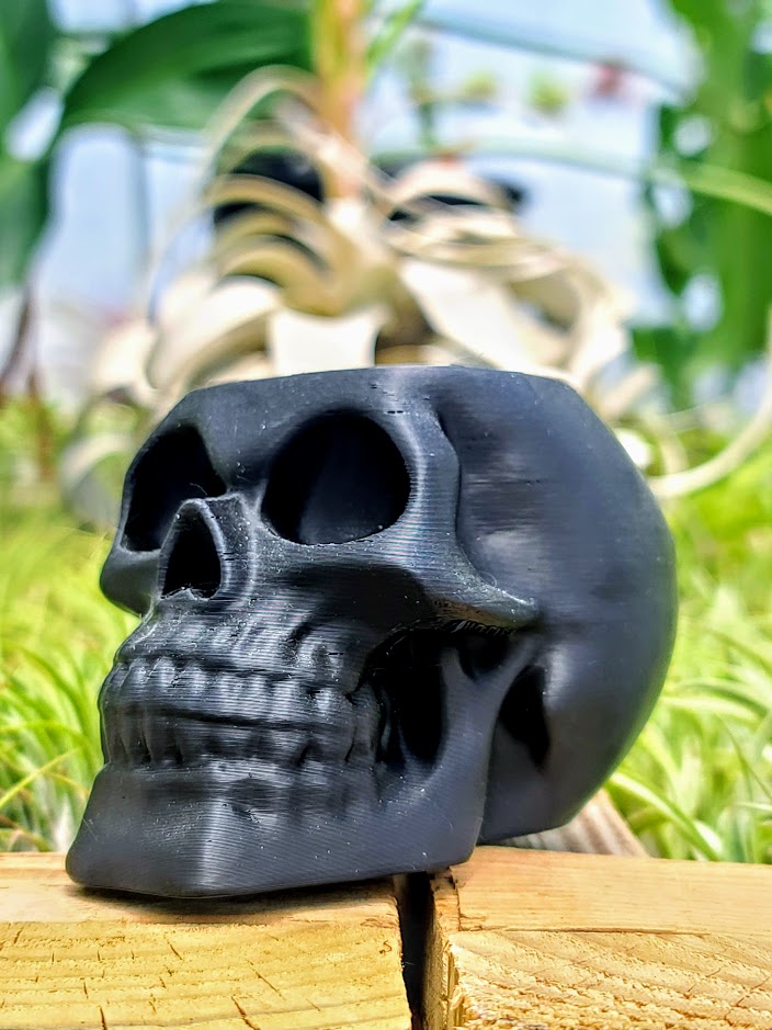 Solid Black Skull 3D Printed Holder w/ Ionantha Druid