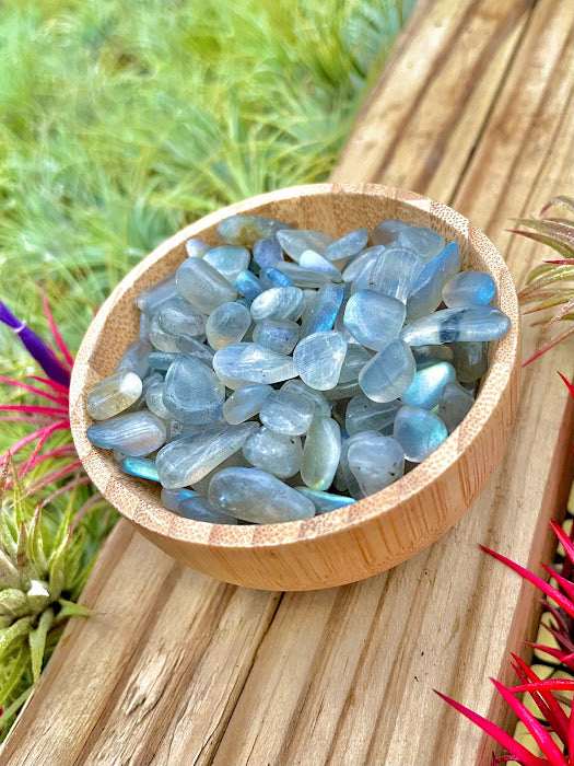 Blue Celestite Crystal Chips Great for adding to your planters, displaying around plants, or for metaphysical properties. Approx. weight: 5oz *Please note: Each crystal chip bag is different and unique! The pieces you receive will be similar, but not exact to the...