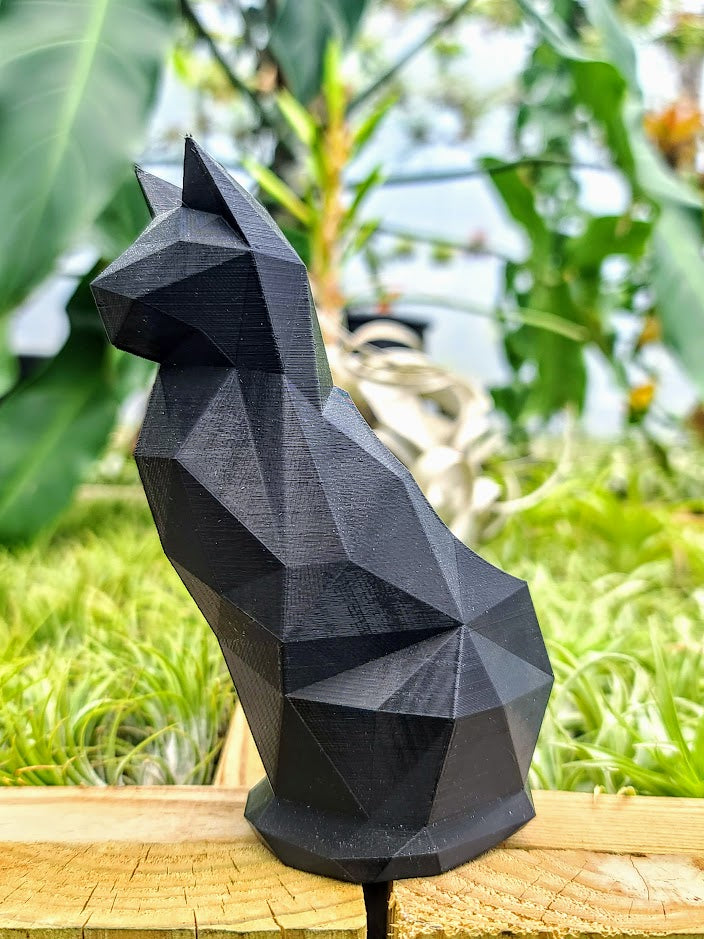 Large Metallic Black Cat 3D Printed Holder w/ Victoriana