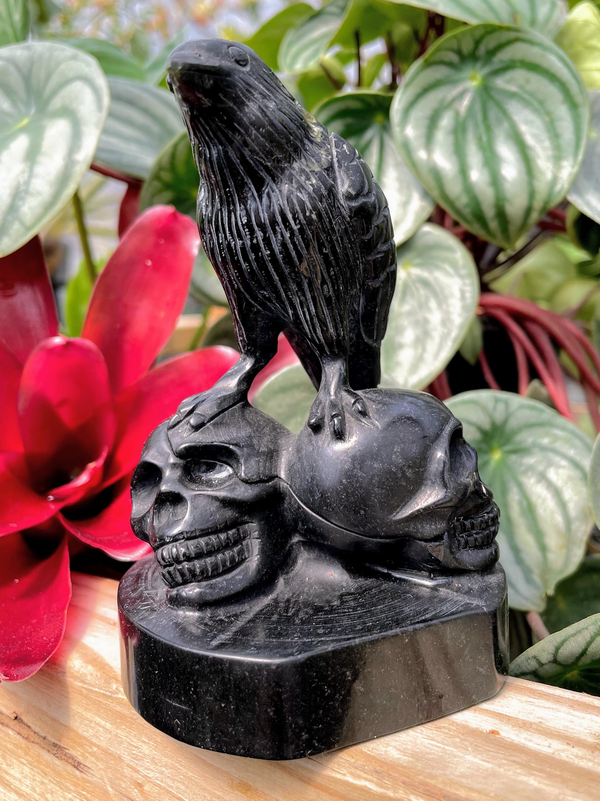 Includes 1 Black Obsidian Double Skull Raven Crystal Carving
